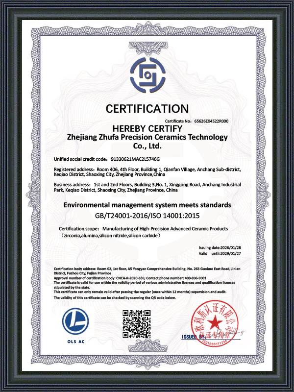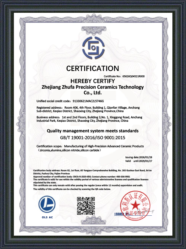 Vi fokuserar inte bara på material och design, utan uppmärksammar också varje detalj i processen. Från utrustning konfiguration till kvalitetsinspektion, Zhufa följer alltid teknikdrivna och strikta kontrollstandarder för att säkerställa prestanda och tillförlitlighet för varje keramisk produkt.