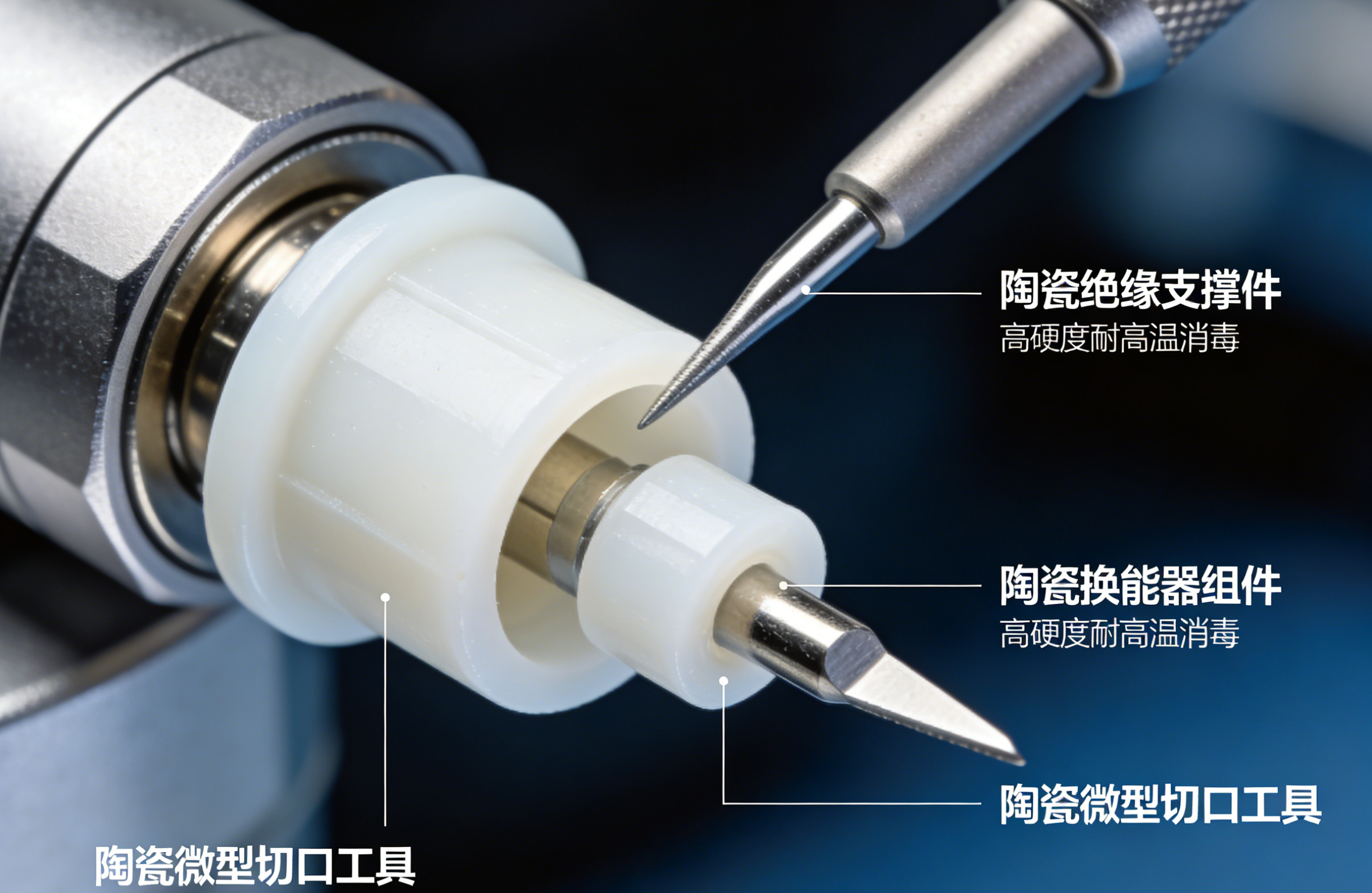 I inbyggda spekulum, ultraljuds-osteotomer och mikrosensorer, bär den keramiska delen det isolerande stödet eller transduktorenheten. Dess höga hårdhet möjliggör skapandet av exakt vassa och tillverkade mikroformar, utan att förlora hårdhet vid högtemperatursterilisering som metallverktyg. 4. Avbildning av diagnostiska utrustningskomponenter